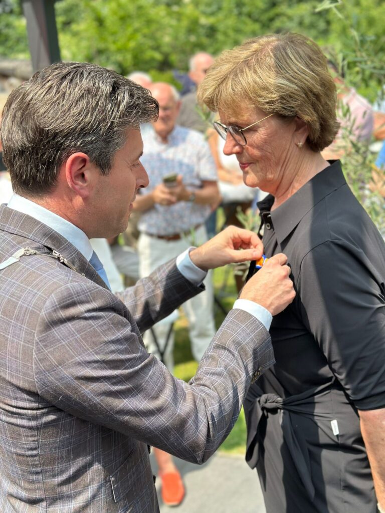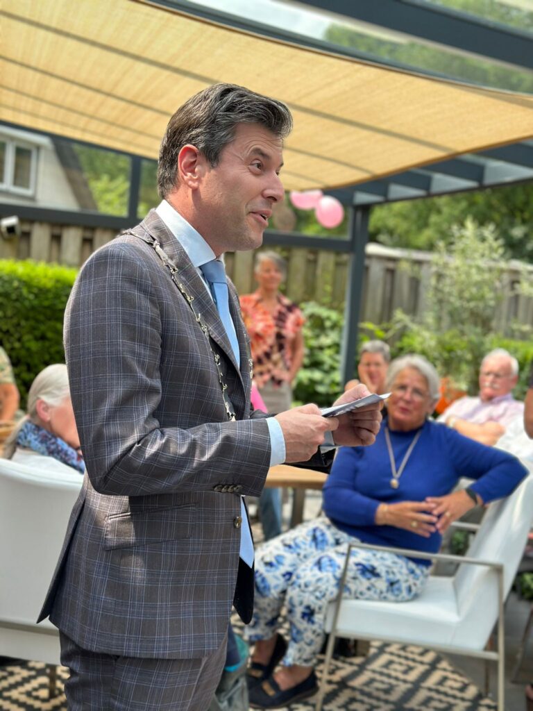 Op 3 juni kwam de burgemeester thuis langs om Marian de Koninklijke Onderscheiding in levenden lijve te overhandigen.